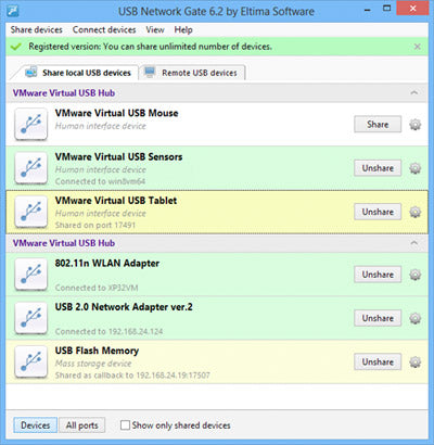 世界中(もしくはオフィス内など)で、複数のPCの間で、イーサネット上でUSB機器を共有することもできます。